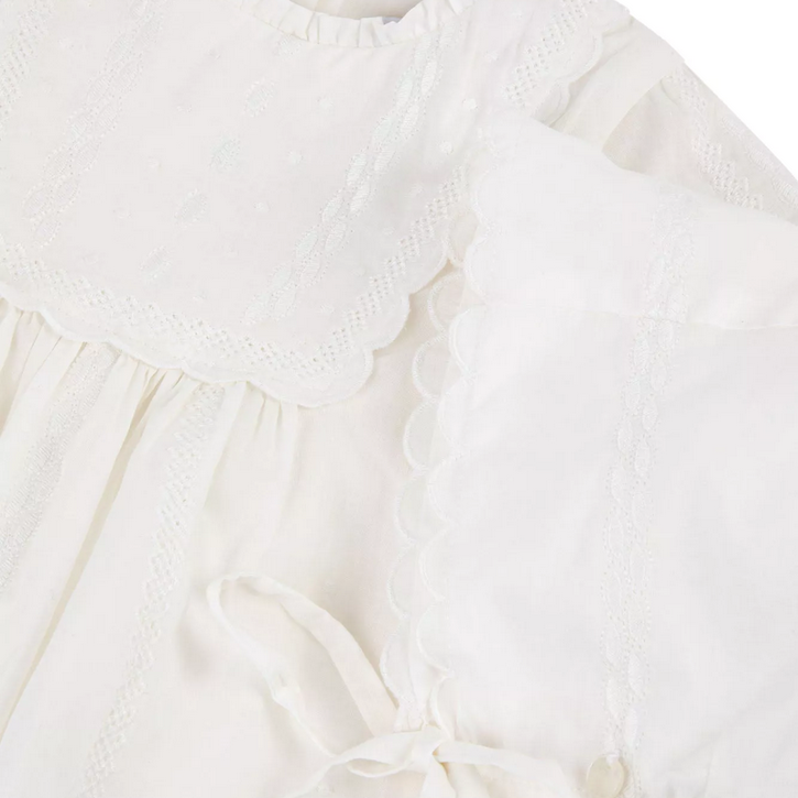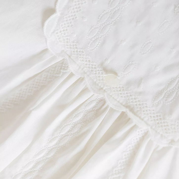 Het prachtige Engelse borduurwerk en de gegolfde details geven het elegantie en verfijning.
